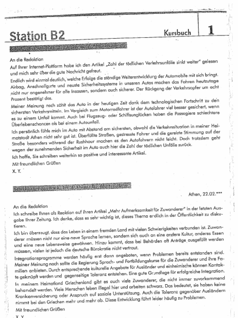 B1-B2, Texte Schreiben, Schriftliche Prüfung, Written Exam, Deutsch